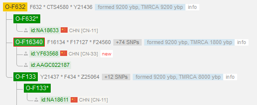 我做了Y高通测试,已确定属于F16340这个支系,YFULL计算共祖只有1800年。