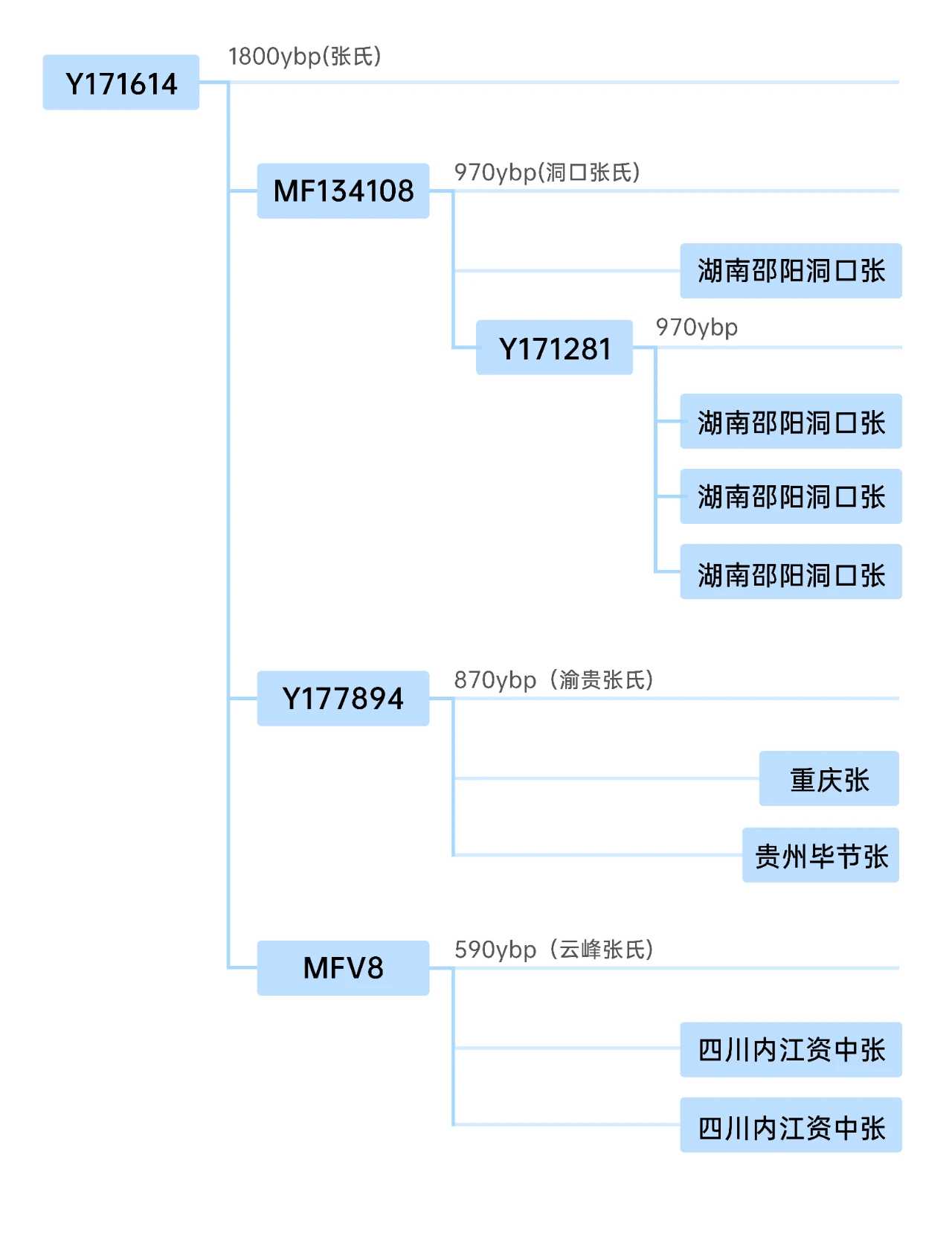 张先生历尽艰难,多方拜访,最终与来自其家族四个不同分支的后裔以及重庆、贵州、四川等相传出自湖南邵阳、怀化等地的张氏一同进行了基因检测,发现这些用户均为单倍型 Q-F4759 的下游,表明他们极有可能源自同一个张姓祖先,而这位张姓祖先是否就是《张氏族谱》中记载的张朝凤呢?这就需要更精确的检测了。