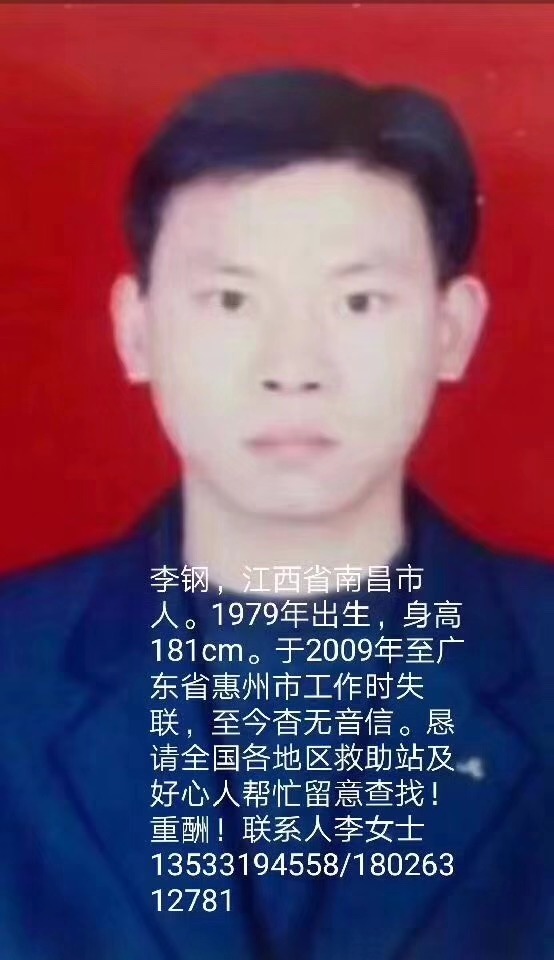 举报该帖子 我叫李刚,男,出生于1979年4月,来自于江西省南昌市新建区,我想寻找家人。2021-06-23· 592 浏览1 评论 天涯阿伯 我的个人信息姓名:李刚性别:男目前所在地:广东省 惠州市 全部籍贯地:江西省 南昌市 新建区出生日期:1979年4月失散时详细信息需要寻找的亲人:弟弟失散原因:在惠州市工作而失联。失散地区:广东省 惠州市 全部失散日期:2009年1月失散时年龄范围:31~40岁失散经过、外貌特征等信息:身高一米八一,清秀,肤色白哲,具有书生文气。 1 条评论 热门最新姆林 邓弗姆林 2021-06-23你可以参加公安部的团圆行动https://mp.weixin.qq.com/s/8yD5DxmyOcLNa3NPGIIRJQ添加评论点赞 举报该评论 举报该评论 举报类型 违法违规 色情低俗 时政不实信息 引导站外加群 冒充他人 谩骂攻击 网络暴力 其他 无数据 举报描述 举报截图 提交取消评论 图片关联家族你保存和创建的家族 完成关联单倍群 完成提交评论