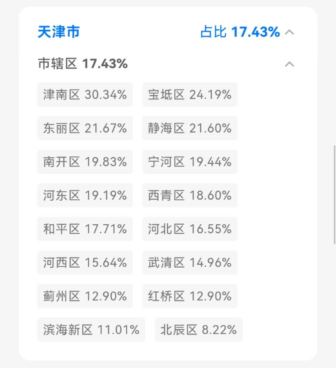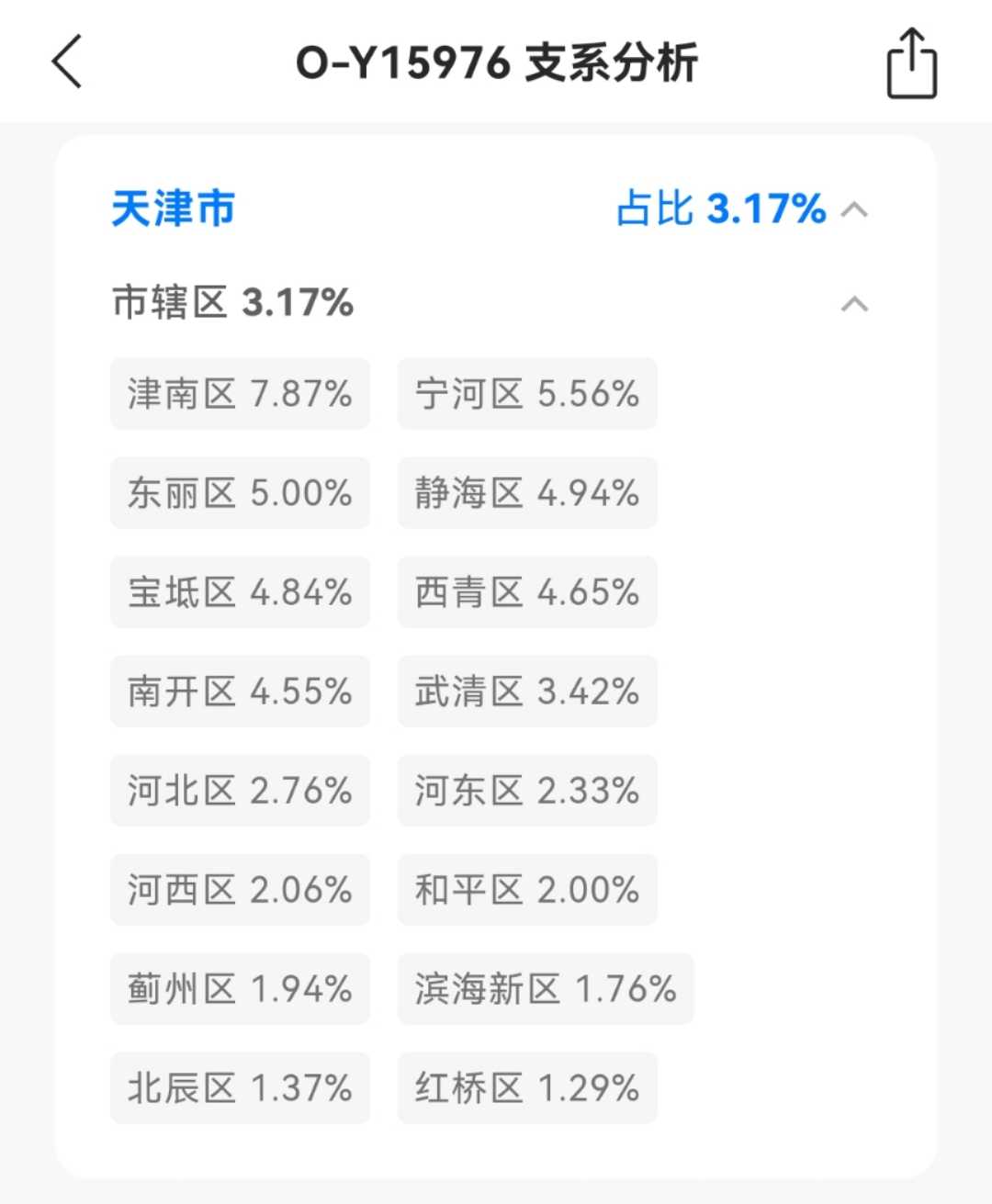 再具体到下一级行政区。可见徽北的002611并不比徽南高频,大部分只是比天津略高频,淮北频率甚至塌陷了。这样看起来,天津002611的高频似乎与安徽关系不大。