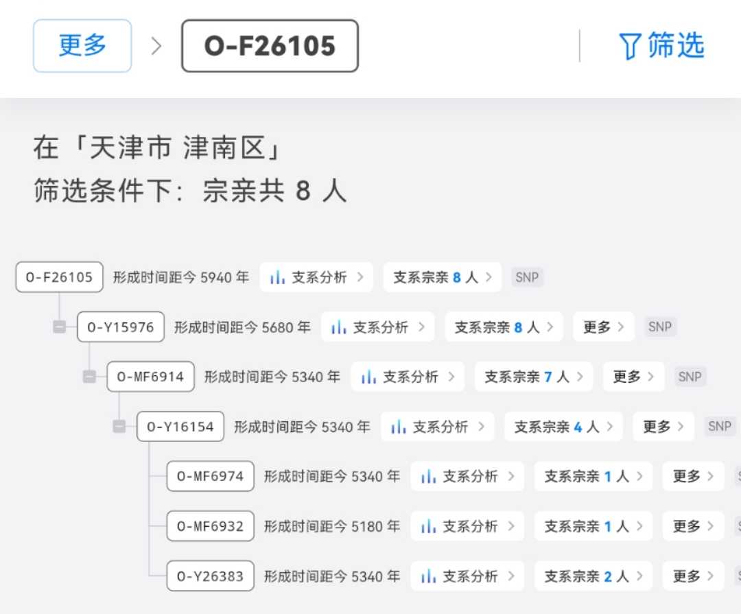 这说明,天津002611与徽北移民的关系是相关的,那怎么解释天津(或津南区)002611(或下游)远远高于徽北对应的城市呢?四种可能,样本少、测不均、按村迁徙、遗传漂变。所谓样本少,天津津南区只测了九十多例,存在一定影响;测不均,也就是在津南区内部测不均,造成加权的干扰;按村迁徙,指徽北军户移民可能多数集中在002611高频县(甚至是村);遗传漂变,指迁徙的人过少导致遗传随机性事件。 上面以002611为例说明了天津父系与徽北移民之间的关系,同样地,以O-M188为例,O-F1694,O-Y140808,O-MF18577都或多或少地出现了天津或宁夏这些军户移民地带高频的现象。也就再次说明,天津人口显然与军户移民有关。