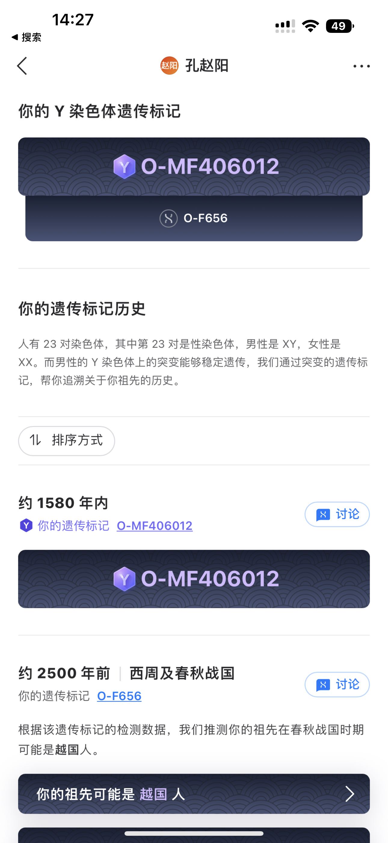 至少你和我儿子的祖先都是越国人1至少2500年前共祖