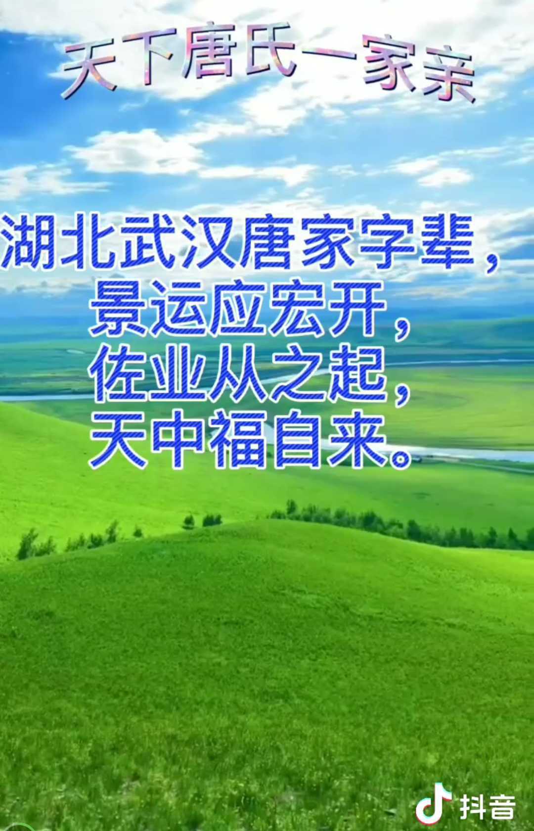 此字辈分布区域至少包括武汉市江夏区乌龙泉街道上门塘湾、下门唐湾、建设村唐家湾。上门塘现存在世之人的字辈“宏开佐业从之起”。