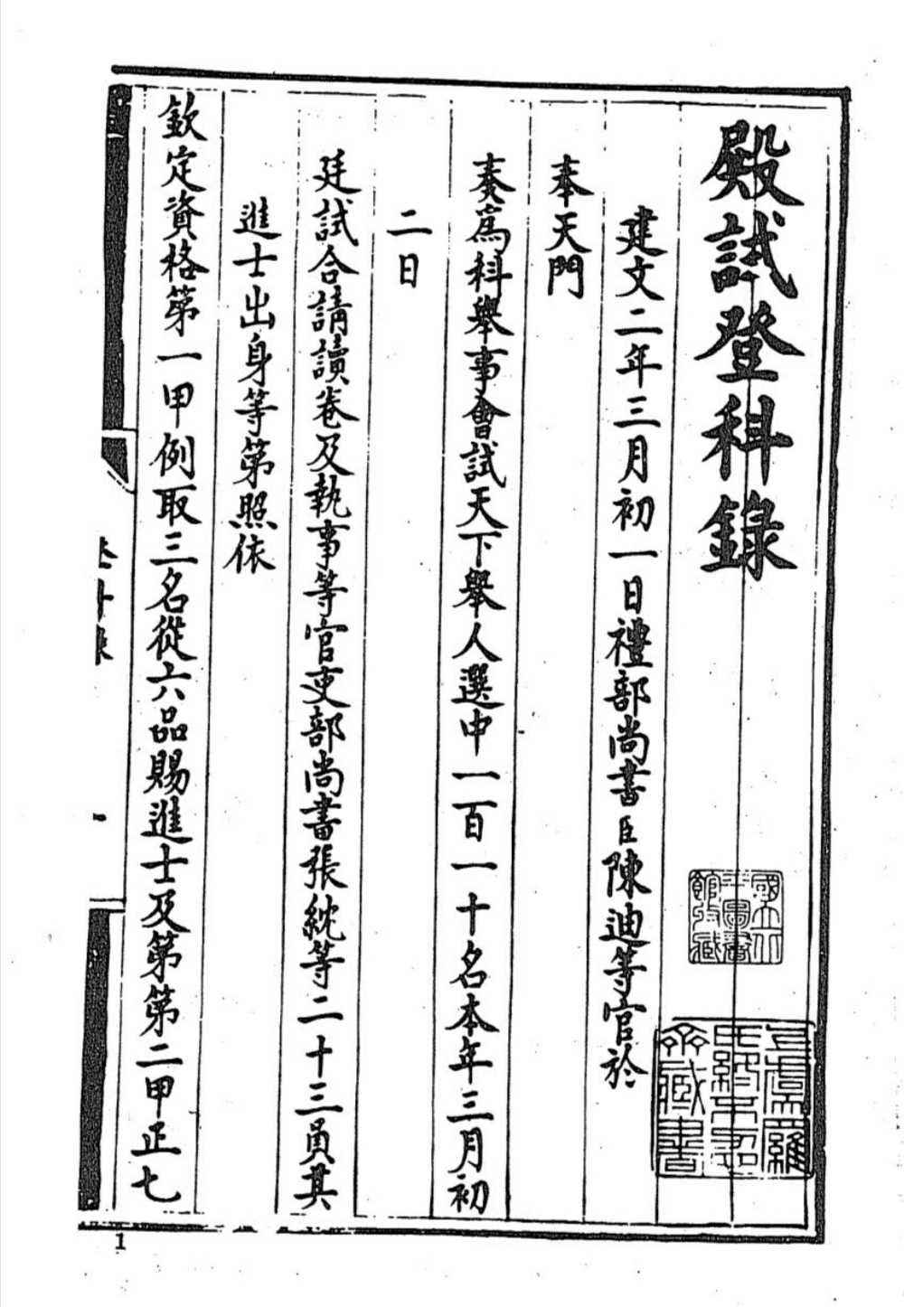 趙思敏 第三甲 第一百三名 蓬萊縣 民籍