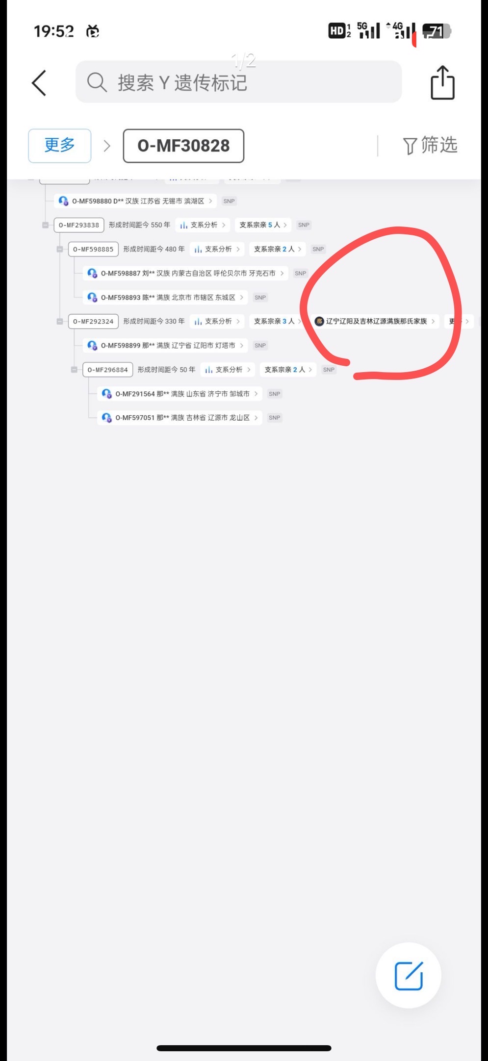 确实挺有意思,上溯到两千四百年前的上游父系,有蒙古族,汉族,满族,甚至还有一个纳西族的,从南到北都有分布