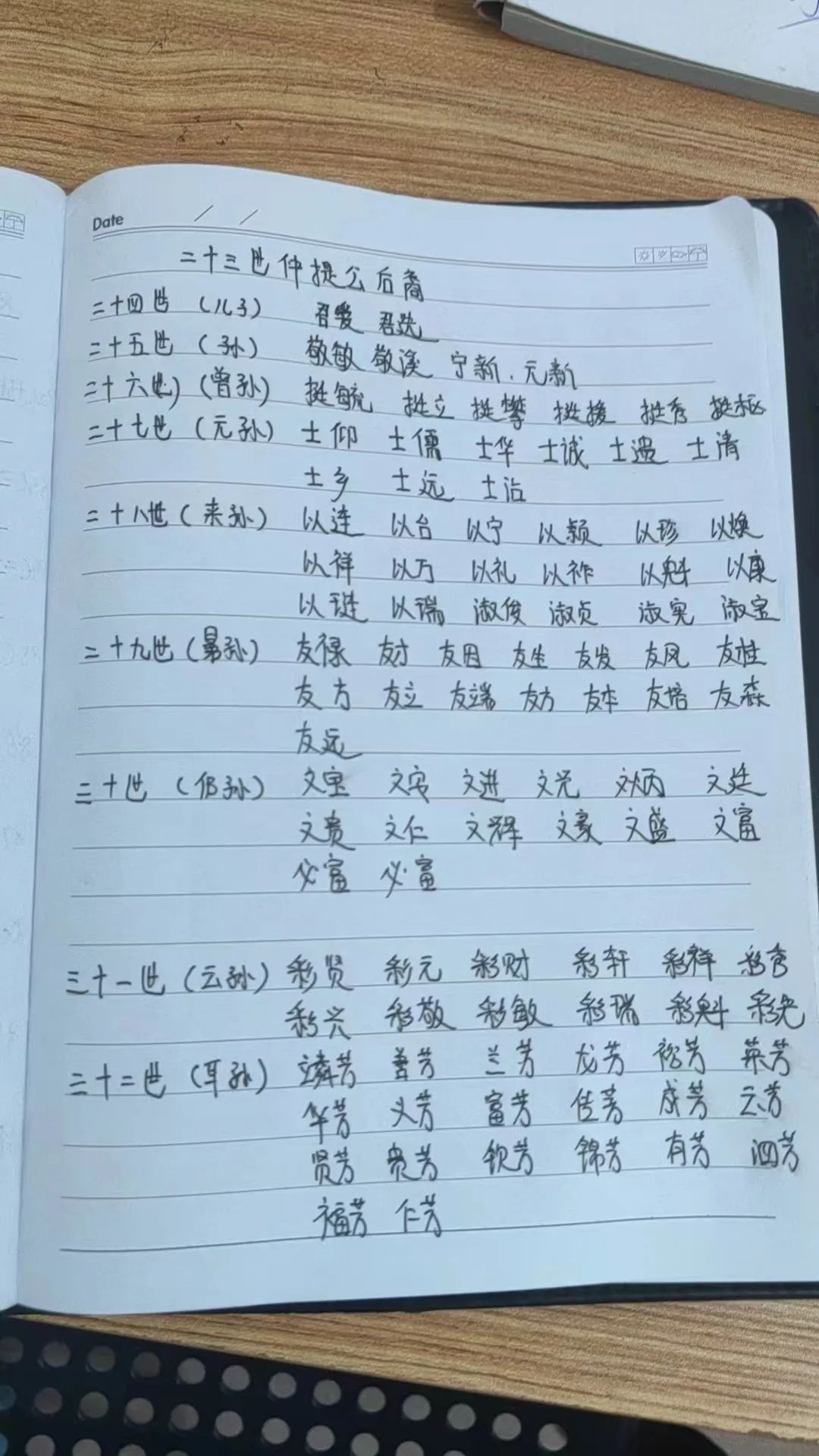 云岫公25世,广东梅州蕉岭三圳铁西杨屋开基祖,葬平远县仁居镇社南半溪村猛虎跳墙,配张氏,墓碑记载(儿子二十六世)挺毓,挺援,挺攀,挺秀,(孙子二十七世)仕儒,仕沾,仕清,仕仰,仕乡, (曾孙二十八世)以祚,以礼,以焕,以珍,以颖,以康,以魁,以台,以连,以宰,以祥(玄孙二十九世)永朝,永昌,永宸,永禄,友隆,友发,友生,友桂,友凤,友才,(来孙三十世),文宝,文安,文盛,文进,文豪,文辉,德庸,德珠,德其,德顺,德贤,(悌孙三十一世)彩祥,彩轩,彩财,彩燕,彩华,彩秀,彩旺,彩兴,彩登,彩魁,彩元,彩光,彩繡,彩贤,彩凤,彩敬,彩敏,彩瑞,彩粦(乃孙三十二世),云芳,成芳,华芳,荣芳,富芳,善芳,龙芳,贤芳,兰芳,裕芳,锦芳,钦芳,福芳,友芳,泗芳,仁芳,传芳,全芳,揽芳,(云孙三十三世)维钟,维锐,维镇,维铿,维银,维钊,维铎,维清,维标,维焕,维金,维期,维城。杨永桂13528779448