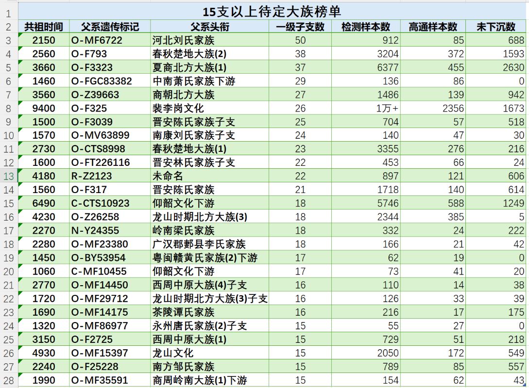 举报该帖子 一级子支数15以上的待定大族排名01-30· 753 浏览3 评论春秋 吕是春秋 只包含仍未被魔方定义为确定的诸侯大族或未被定义到望族的大支系榜单,只含15支以上。已定义的有名有姓的大族(或大族子支)不含在内。检测人数多但是一级子支少也不包含。关联 3 个单倍群O-MF6722O-F793O-F3323 3 条评论 热门最新 使徒 02-01楼主更新一下资系分支数排名吧。添加评论点赞 举报该评论 举报该评论 举报类型 违法违规 色情低俗 时政不实信息 引导站外加群 冒充他人 谩骂攻击 网络暴力 其他 无数据 举报描述 举报截图 提交取消评论 皮卡丘 01-31o-mf6722不是被魔方钦定刘胜吗1 评论点赞 举报该评论 举报该评论 举报类型 违法违规 色情低俗 时政不实信息 引导站外加群 冒充他人 谩骂攻击 网络暴力 其他 无数据 举报描述 举报截图 提交SO Sokker 01-31直接冠名“朱元璋家族”、“刘邦家族”那种才是。魔方还不太敢直接用“中山靖王刘胜家族”命名。2 赞 举报该评论 举报该评论 举报类型 违法违规 色情低俗 时政不实信息 引导站外加群 冒充他人 谩骂攻击 网络暴力 其他 无数据 举报描述 举报截图 提交取消评论取消评论 图片关联家族你保存和创建的家族 完成关联单倍群 完成提交评论